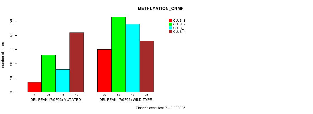Del Peak 17(9p23) cnvs correlated to 'CN_CNMF' and 'METHLYATION_CNMF'.