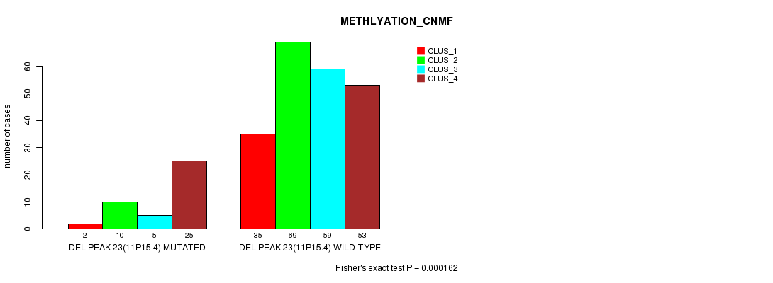 Del Peak 23(11p15.4) cnvs correlated to 'CN_CNMF' and 'METHLYATION_CNMF'.