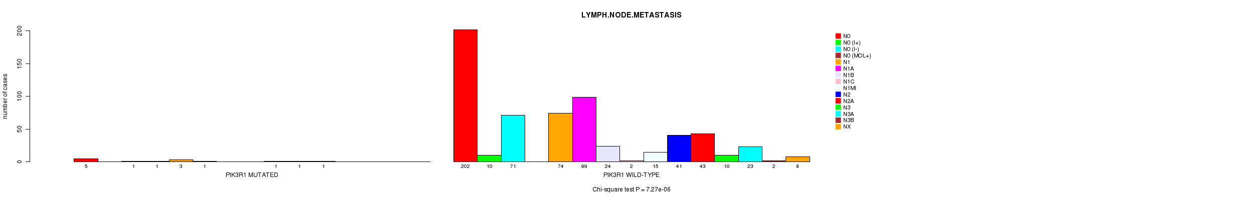 PIK3R1 mutation correlated to 'LYMPH.NODE.METASTASIS'.
