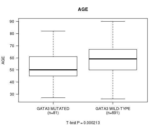 GATA3 mutation correlated to 'AGE'.