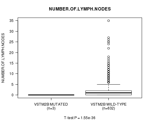 VSTM2B mutation correlated to 'NUMBER.OF.LYMPH.NODES'.
