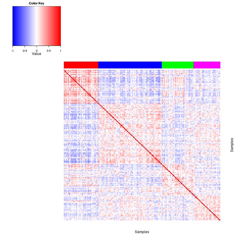 Figure 2. Get High-res Image The consensus matrix after clustering shows 4 clusters with limited overlap between clusters.