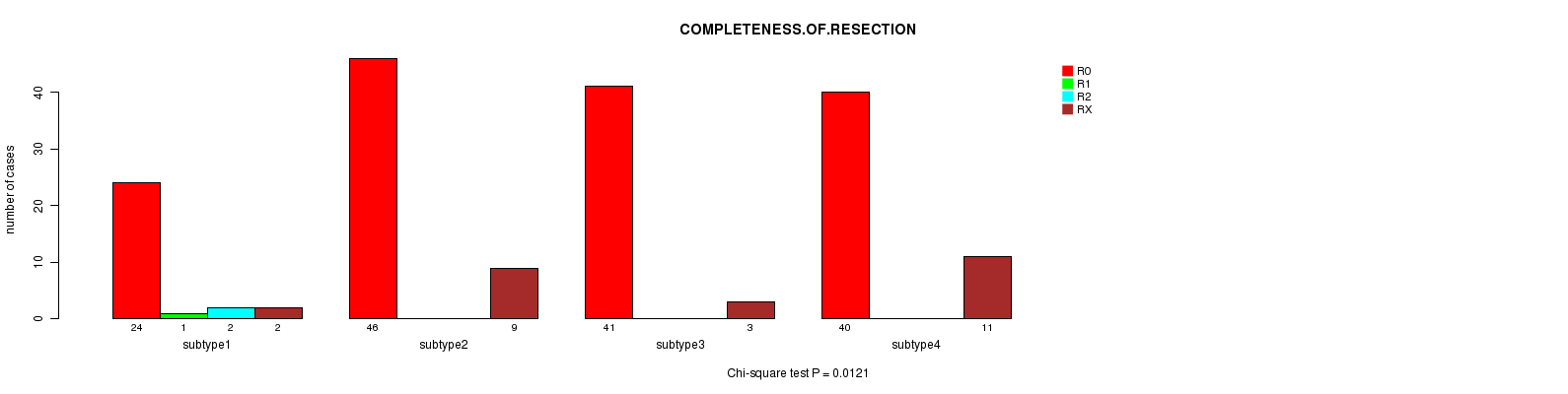Figure S119. Get High-res Image Clustering Approach #10: 'MIRSEQ CHIERARCHICAL' versus Clinical Feature #11: 'COMPLETENESS.OF.RESECTION'