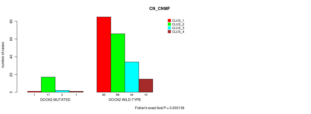 DOCK2 mutation correlated to 'MRNA_CNMF' and 'CN_CNMF'.