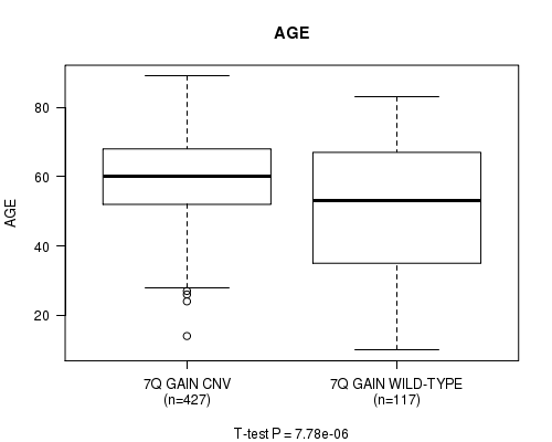 7p gain cnv correlated to 'AGE'.