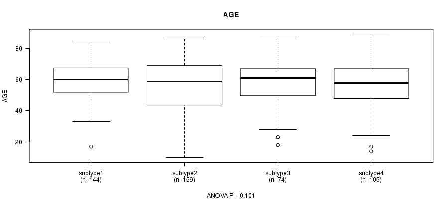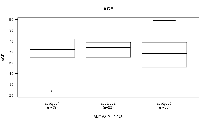Figure S42. Get High-res Image Clustering Approach #9: 'RNAseq CNMF subtypes' versus Clinical Feature #2: 'AGE'