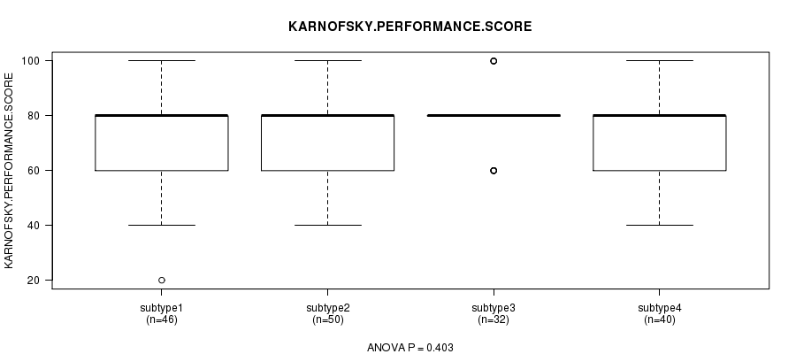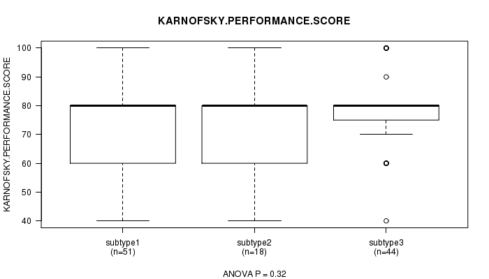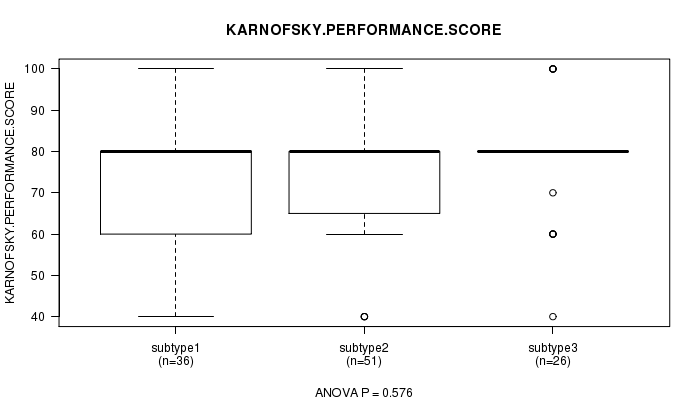Figure S39. Get High-res Image Clustering Approach #8: 'RPPA cHierClus subtypes' versus Clinical Feature #4: 'KARNOFSKY.PERFORMANCE.SCORE'