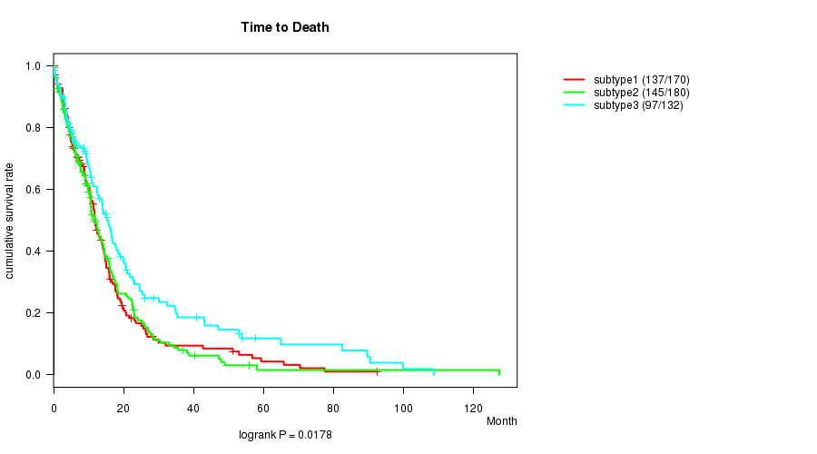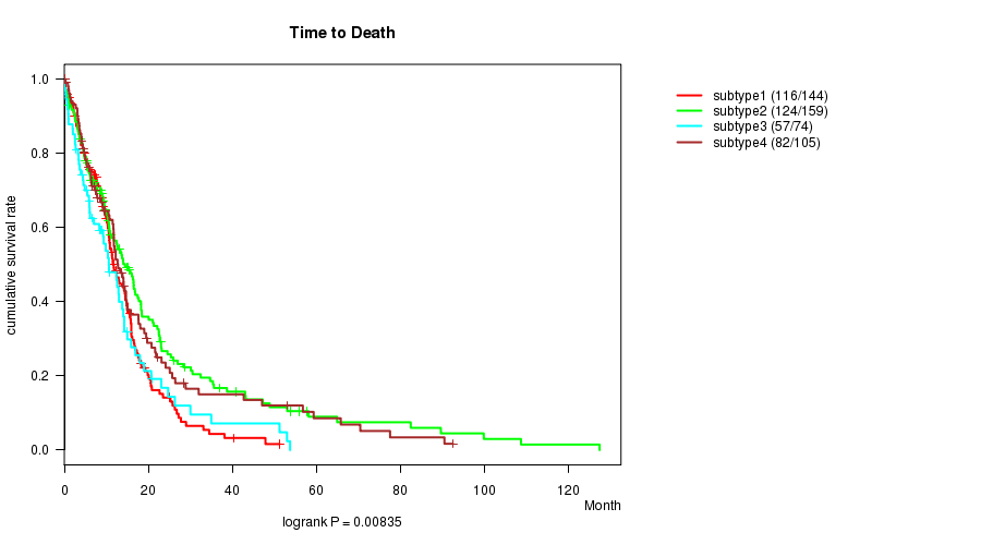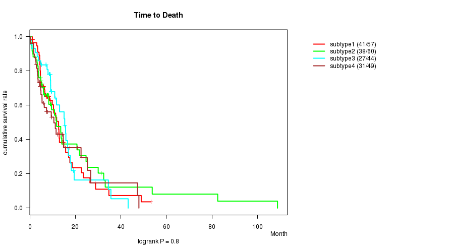 Figure S41. Get High-res Image Clustering Approach #9: 'RNAseq CNMF subtypes' versus Clinical Feature #1: 'Time to Death'