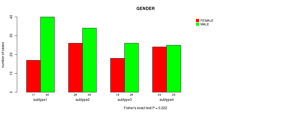 Figure S43. Get High-res Image Clustering Approach #9: 'RNAseq CNMF subtypes' versus Clinical Feature #3: 'GENDER'