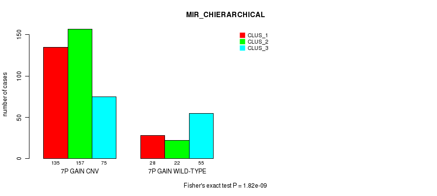 7p gain cnv correlated to 'MRNA_CNMF', 'MRNA_CHIERARCHICAL', 'MIR_CHIERARCHICAL', and 'CN_CNMF'.