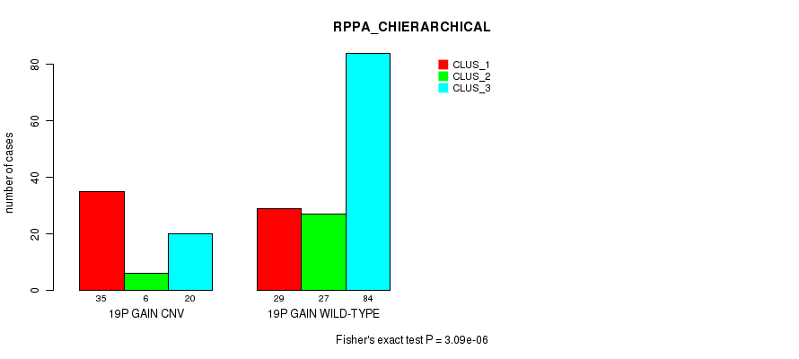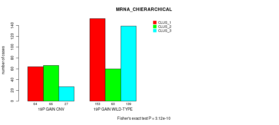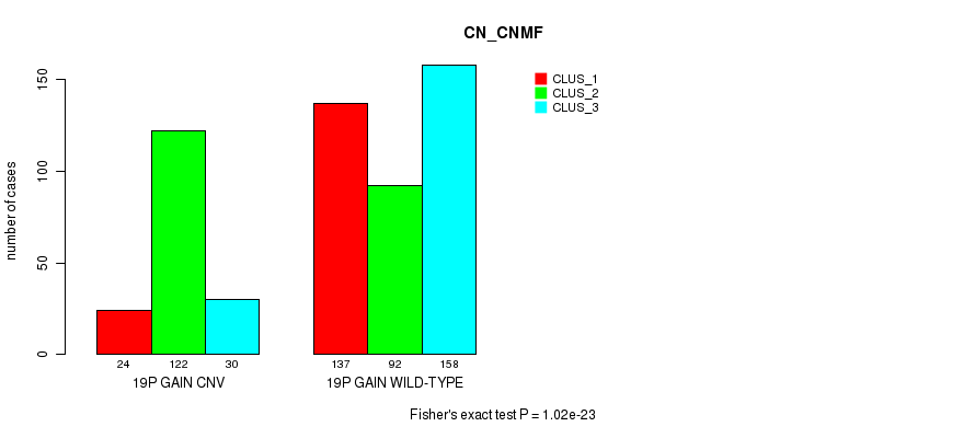 19p gain cnv correlated to 'MRNA_CNMF', 'MRNA_CHIERARCHICAL', 'MIR_CHIERARCHICAL', 'CN_CNMF', and 'RPPA_CHIERARCHICAL'.