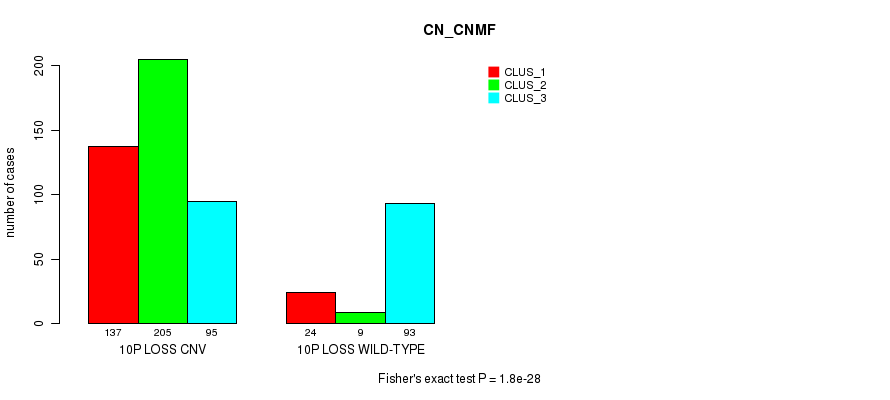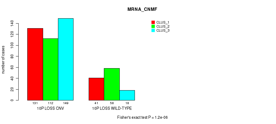 10p loss cnv correlated to 'MRNA_CNMF', 'MRNA_CHIERARCHICAL', 'MIR_CHIERARCHICAL', and 'CN_CNMF'.