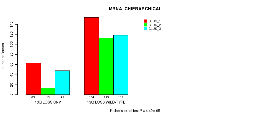 Figure S50. Get High-res Image Gene #64: '13q loss' versus Molecular Subtype #2: 'MRNA_CHIERARCHICAL'
