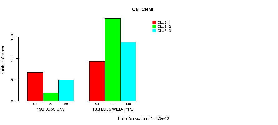 13q loss cnv correlated to 'MRNA_CHIERARCHICAL' and 'CN_CNMF'.