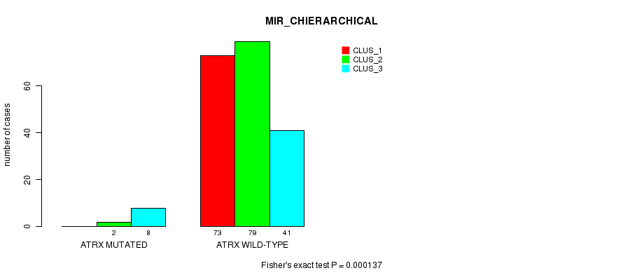 Table S13. Gene #41: 'ATRX MUTATION STATUS' versus Clinical Feature #4: 'MIR_CHIERARCHICAL'