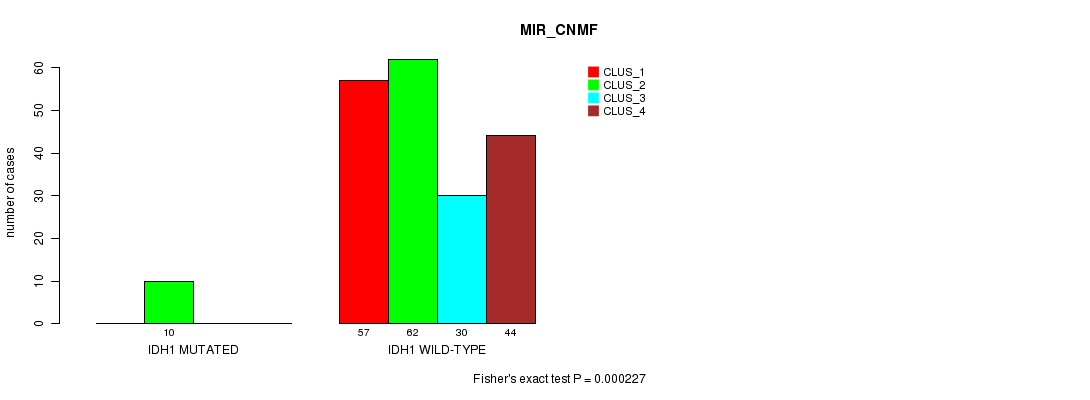Figure S6. Get High-res Image Gene #4: 'IDH1 MUTATION STATUS' versus Clinical Feature #3: 'MIR_CNMF'
