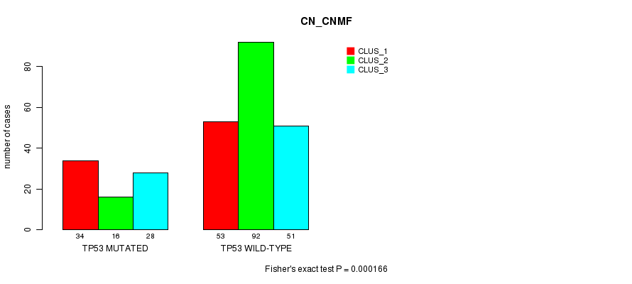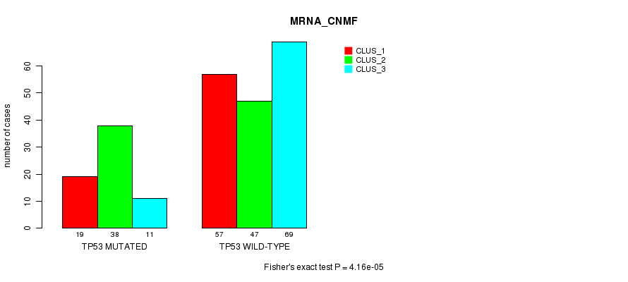 TP53 mutation correlated to 'MRNA_CNMF' and 'CN_CNMF'.