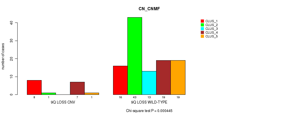 Table S37. Gene #43: '9q loss' versus Molecular Subtype #3: 'CN_CNMF'