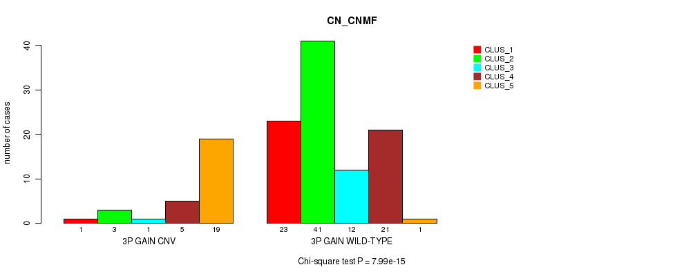 3p gain cnv correlated to 'CN_CNMF', 'MRNASEQ_CNMF', 'MRNASEQ_CHIERARCHICAL', and 'MIRSEQ_CHIERARCHICAL'.