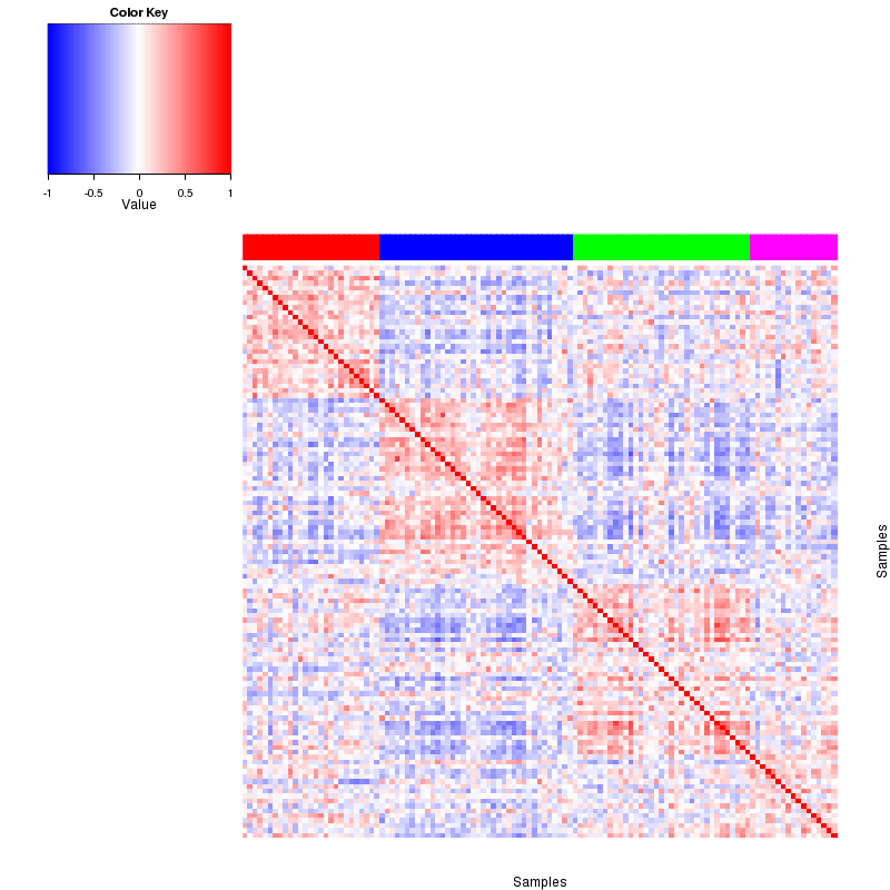 Figure 4. The consensus matrix after clustering shows 4 robust clusters with limited overlap between clusters.