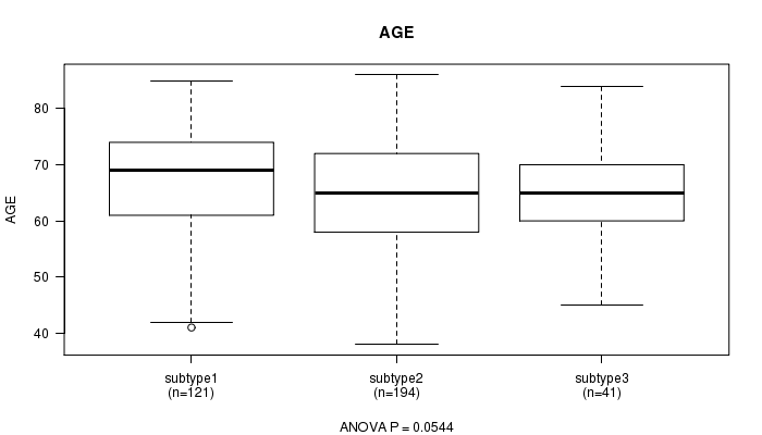 Figure S126. Get High-res Image Clustering Approach #10: 'MIRSEQ CHIERARCHICAL' versus Clinical Feature #2: 'AGE'