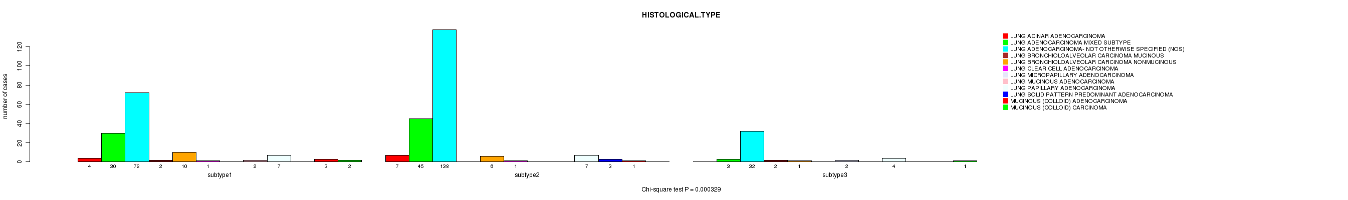Figure S129. Get High-res Image Clustering Approach #10: 'MIRSEQ CHIERARCHICAL' versus Clinical Feature #5: 'HISTOLOGICAL.TYPE'
