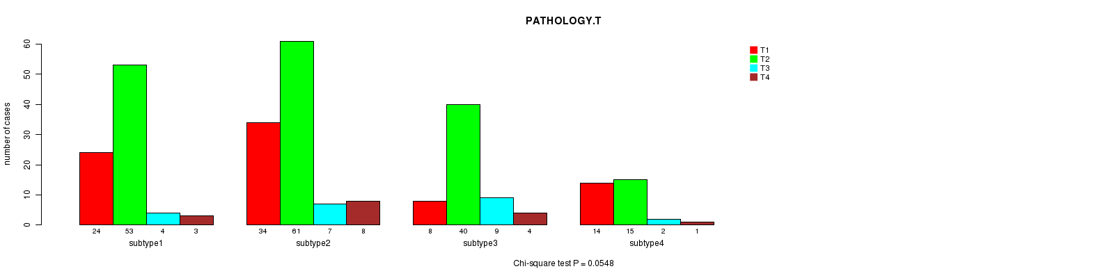 Table S140. Clustering Approach #10: 'MIRSEQ CHIERARCHICAL' versus Clinical Feature #6: 'PATHOLOGY.T'