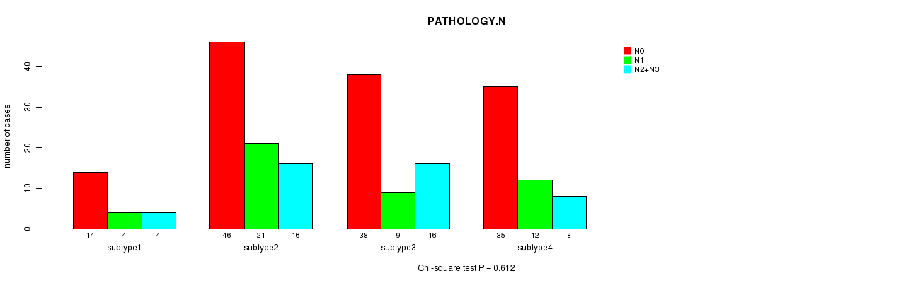 Table S141. Clustering Approach #10: 'MIRSEQ CHIERARCHICAL' versus Clinical Feature #7: 'PATHOLOGY.N'