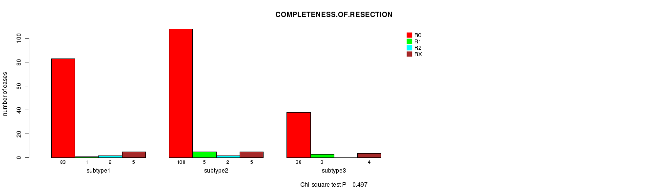 Figure S138. Get High-res Image Clustering Approach #10: 'MIRSEQ CHIERARCHICAL' versus Clinical Feature #14: 'COMPLETENESS.OF.RESECTION'