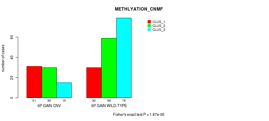 6p gain cnv correlated to 'CN_CNMF' and 'METHLYATION_CNMF'.