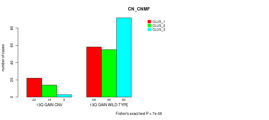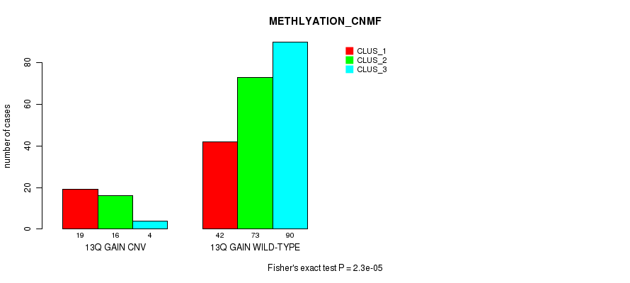 13q gain cnv correlated to 'CN_CNMF' and 'METHLYATION_CNMF'.