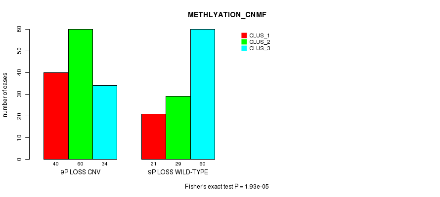 9p loss cnv correlated to 'CN_CNMF' and 'METHLYATION_CNMF'.