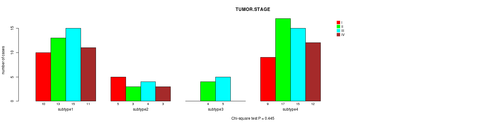 Figure S63. Get High-res Image Clustering Approach #6: 'MIRSEQ CHIERARCHICAL' versus Clinical Feature #8: 'TUMOR.STAGE'
