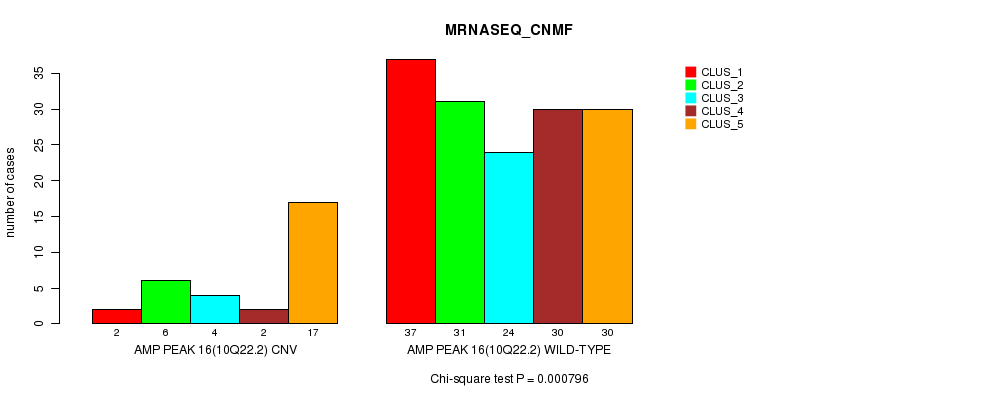 Amp Peak 16(10q22.2) cnvs correlated to 'CN_CNMF' and 'MRNASEQ_CNMF'.