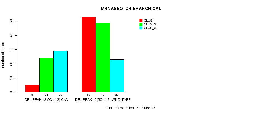 Del Peak 12(5q11.2) cnvs correlated to 'CN_CNMF', 'METHLYATION_CNMF', 'MRNASEQ_CNMF', 'MRNASEQ_CHIERARCHICAL', 'MIRSEQ_CNMF', and 'MIRSEQ_CHIERARCHICAL'.