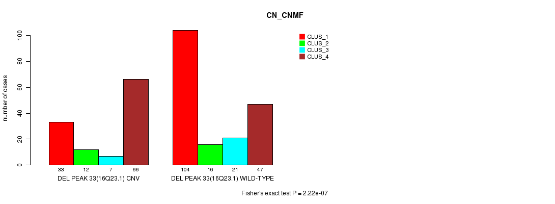 Del Peak 33(16q23.1) cnvs correlated to 'CN_CNMF'.