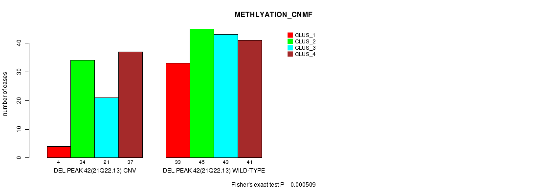 Del Peak 42(21q22.13) cnvs correlated to 'CN_CNMF' and 'METHLYATION_CNMF'.