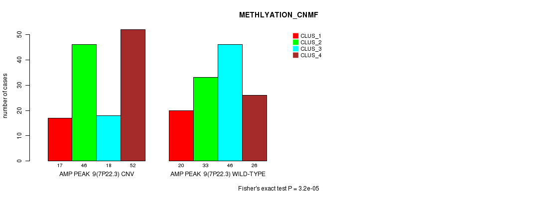 Amp Peak 9(7p22.3) cnvs correlated to 'CN_CNMF' and 'METHLYATION_CNMF'.