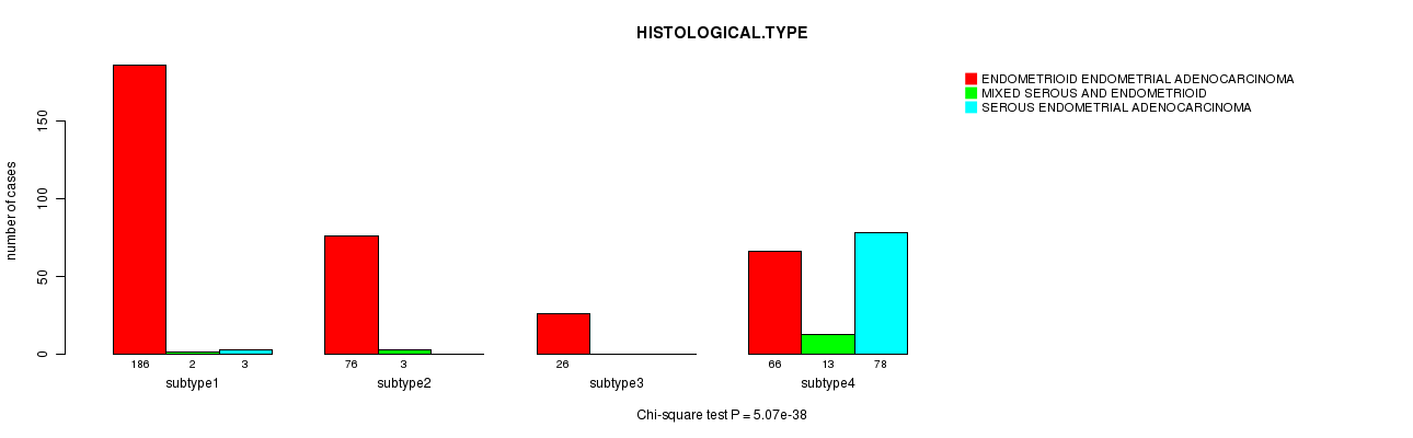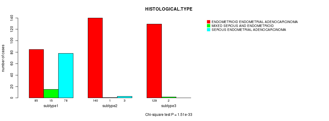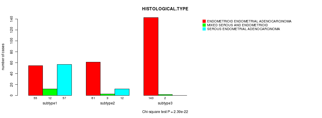 Consensus hierarchical clustering analysis on array-based mRNA expression data identified 3 subtypes that correlate to 'HISTOLOGICAL.TYPE'.
