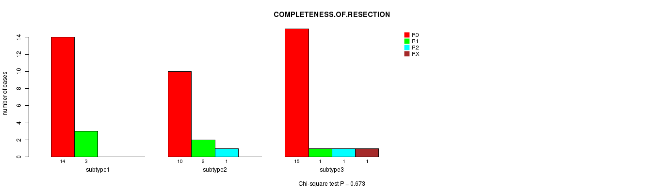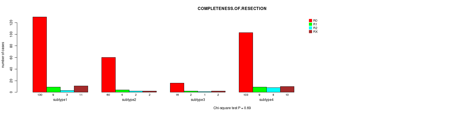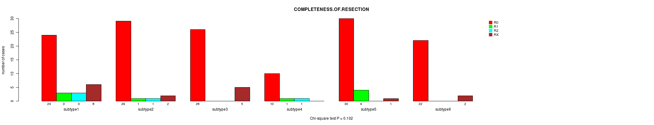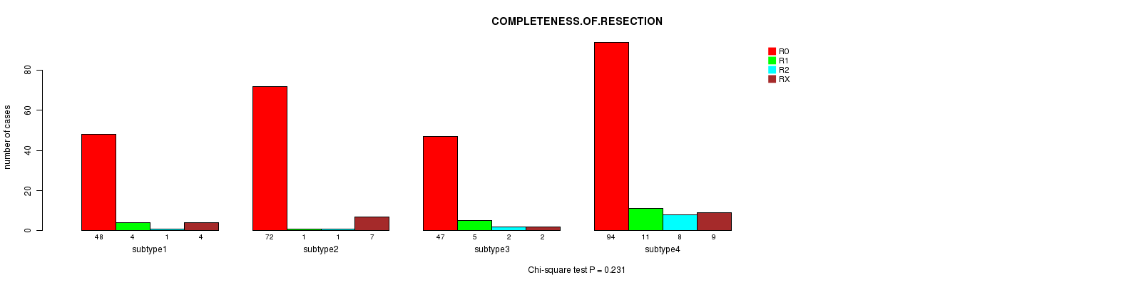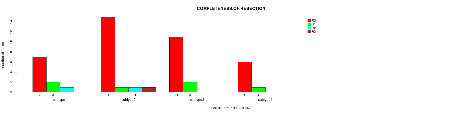 Figure S50. Get High-res Image Clustering Approach #10: 'MIRSEQ CHIERARCHICAL' versus Clinical Feature #5: 'COMPLETENESS.OF.RESECTION'