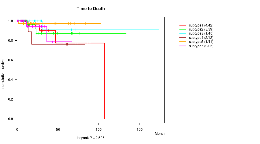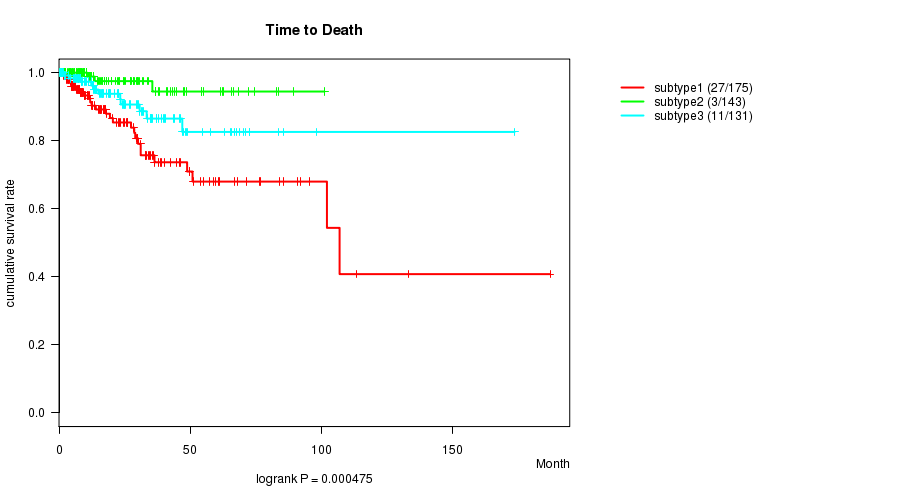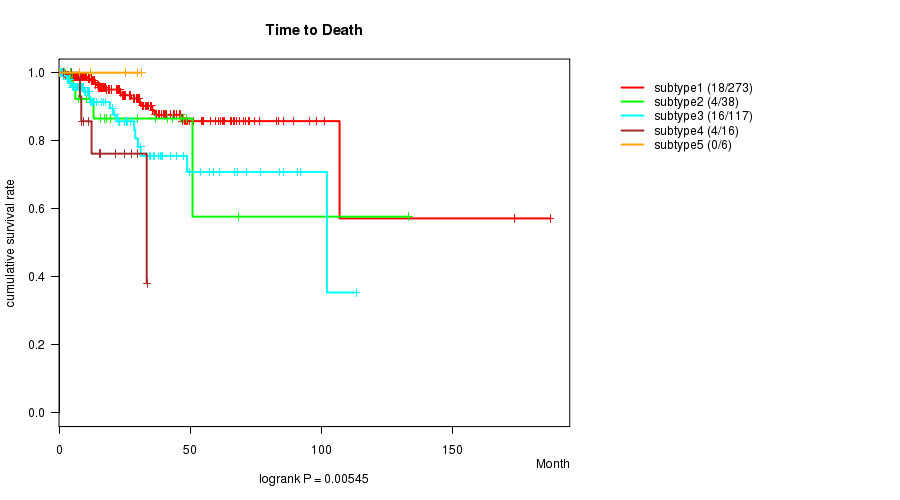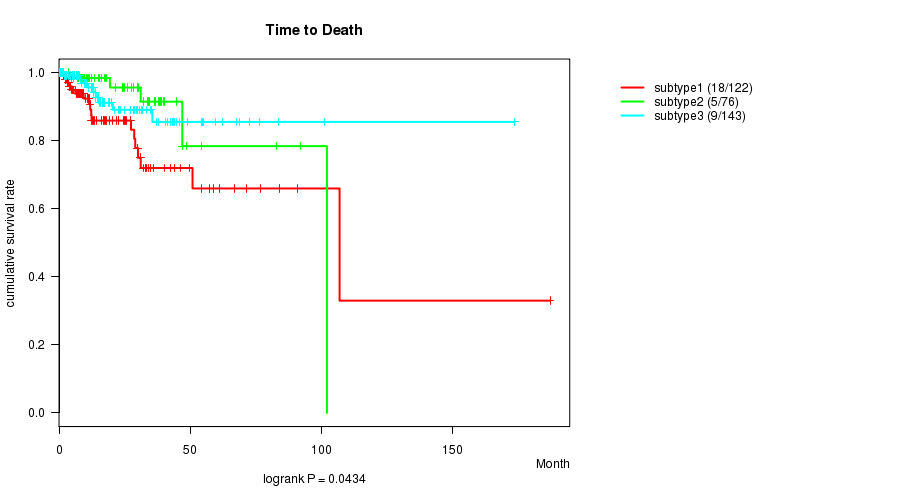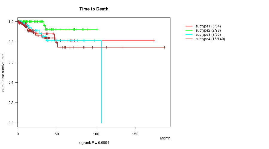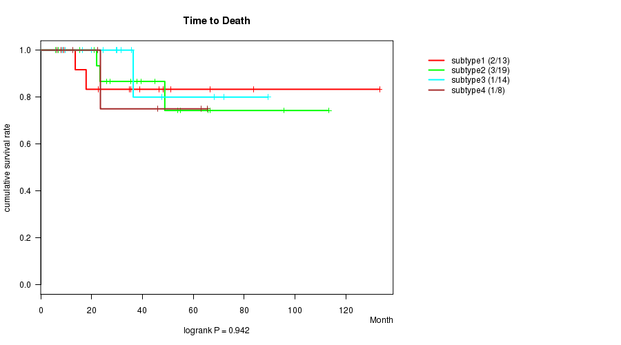 Figure S46. Get High-res Image Clustering Approach #10: 'MIRSEQ CHIERARCHICAL' versus Clinical Feature #1: 'Time to Death'