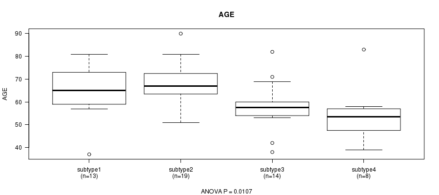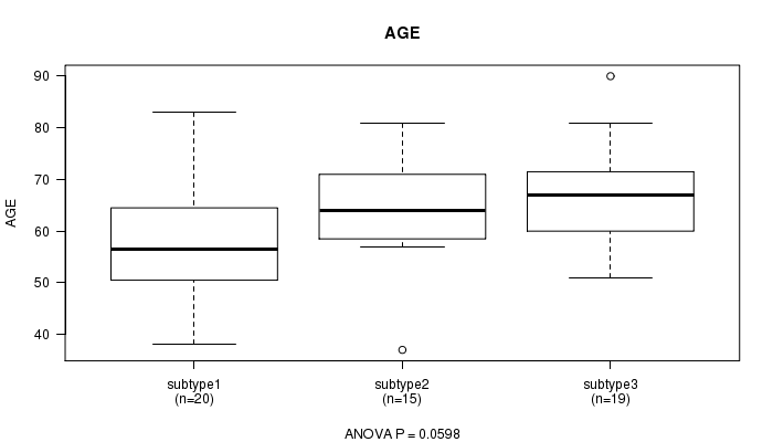 Figure S47. Get High-res Image Clustering Approach #10: 'MIRSEQ CHIERARCHICAL' versus Clinical Feature #2: 'AGE'
