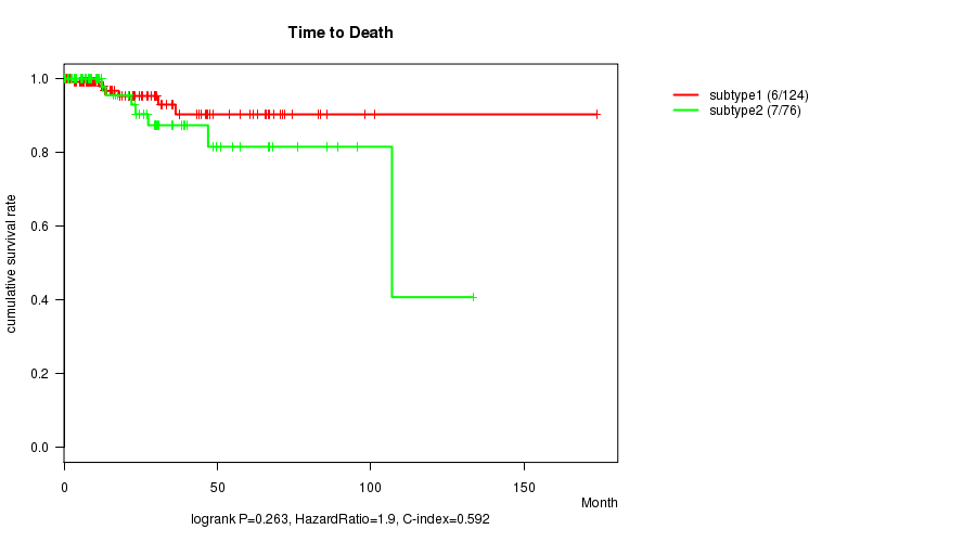 Table S2. Clustering Approach #1: 'mRNA CNMF subtypes' versus Clinical Feature #1: 'Time to Death'
