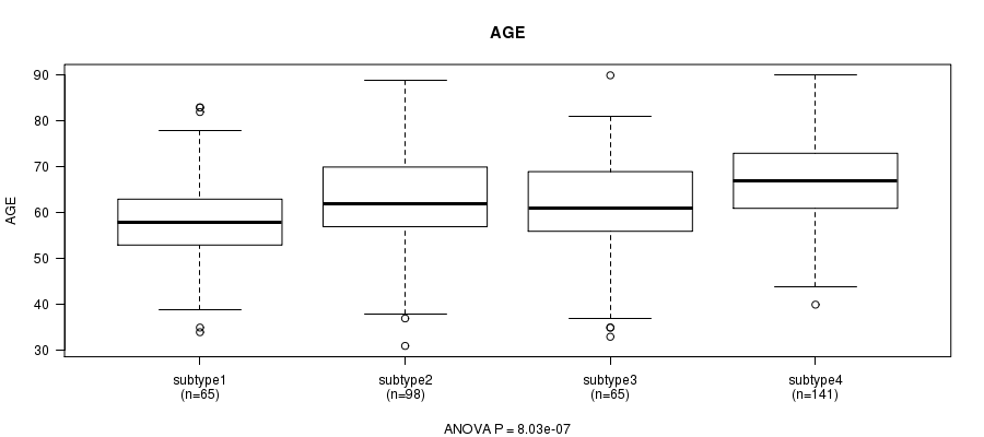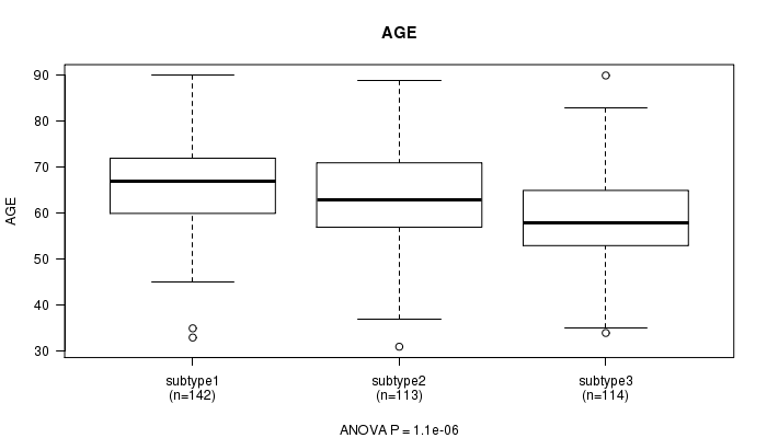 Figure S42. Get High-res Image Clustering Approach #9: 'MIRSEQ CNMF' versus Clinical Feature #2: 'AGE'