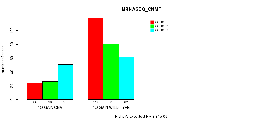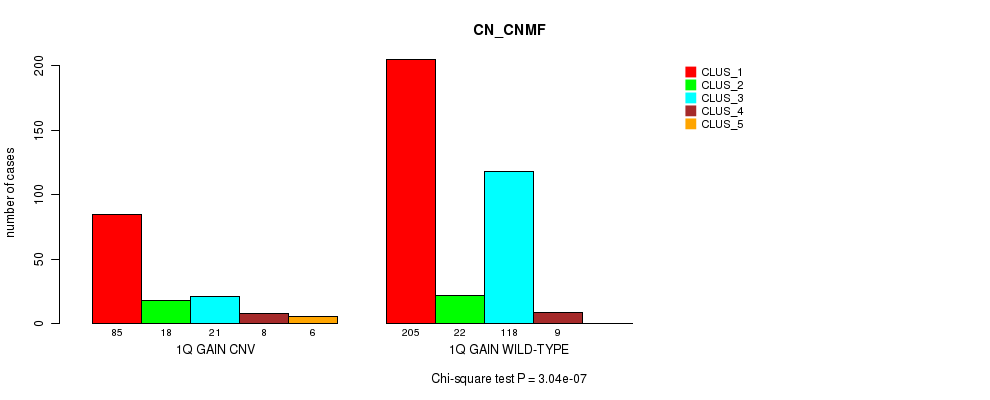 1q gain cnv correlated to 'CN_CNMF', 'MRNASEQ_CNMF', 'MRNASEQ_CHIERARCHICAL', and 'MIRSEQ_CNMF'.