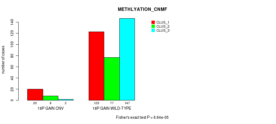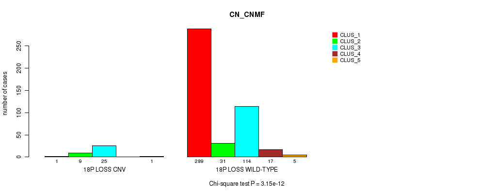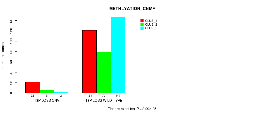18p loss cnv correlated to 'CN_CNMF', 'METHLYATION_CNMF', and 'MRNASEQ_CHIERARCHICAL'.