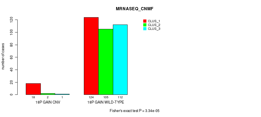 18p gain cnv correlated to 'CN_CNMF', 'METHLYATION_CNMF', 'MRNASEQ_CNMF', 'MRNASEQ_CHIERARCHICAL', 'MIRSEQ_CNMF', and 'MIRSEQ_CHIERARCHICAL'.