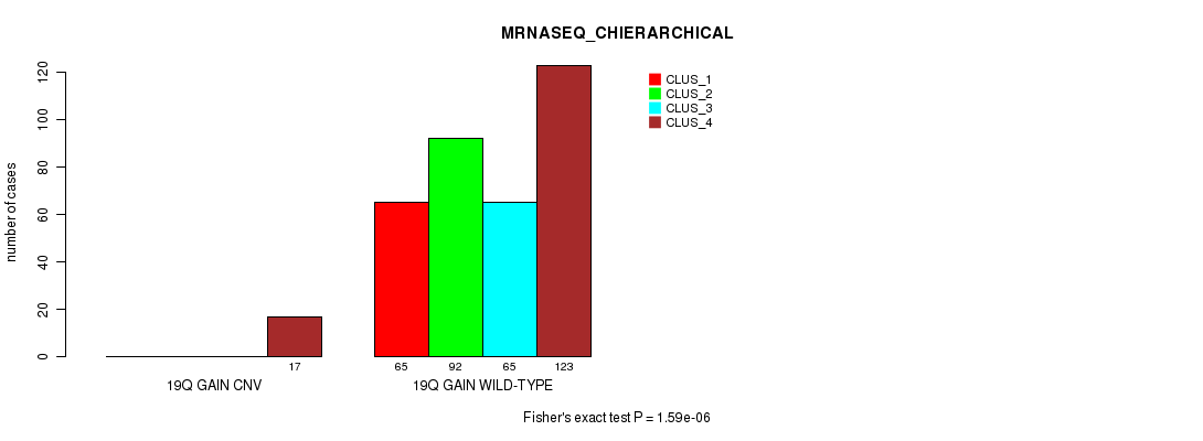 Figure S223. Get High-res Image Gene #74: '19q loss' versus Molecular Subtype #10: 'MIRSEQ_CHIERARCHICAL'