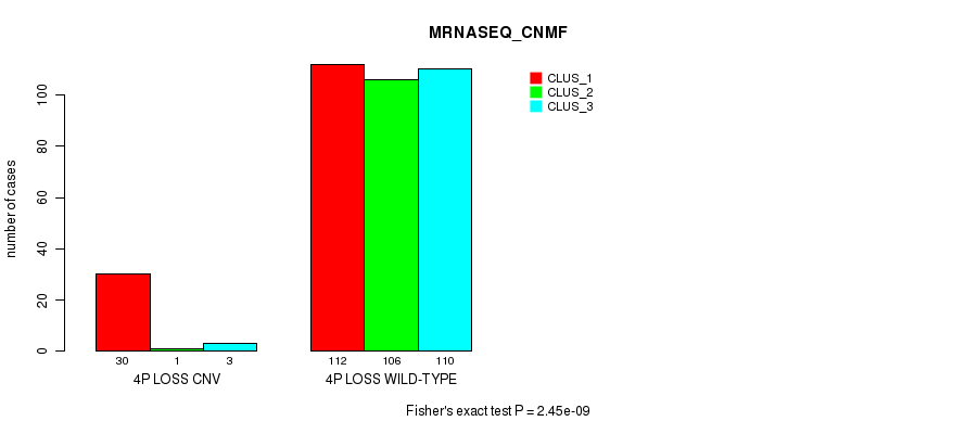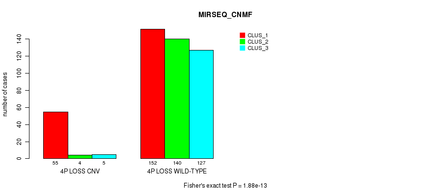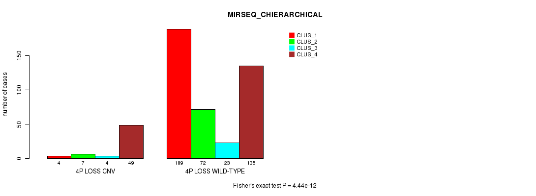 4p loss cnv correlated to 'CN_CNMF', 'METHLYATION_CNMF', 'MRNASEQ_CNMF', 'MRNASEQ_CHIERARCHICAL', 'MIRSEQ_CNMF', and 'MIRSEQ_CHIERARCHICAL'.