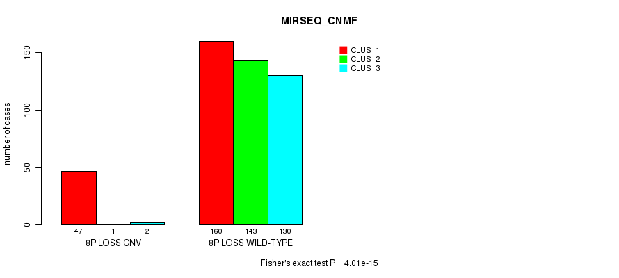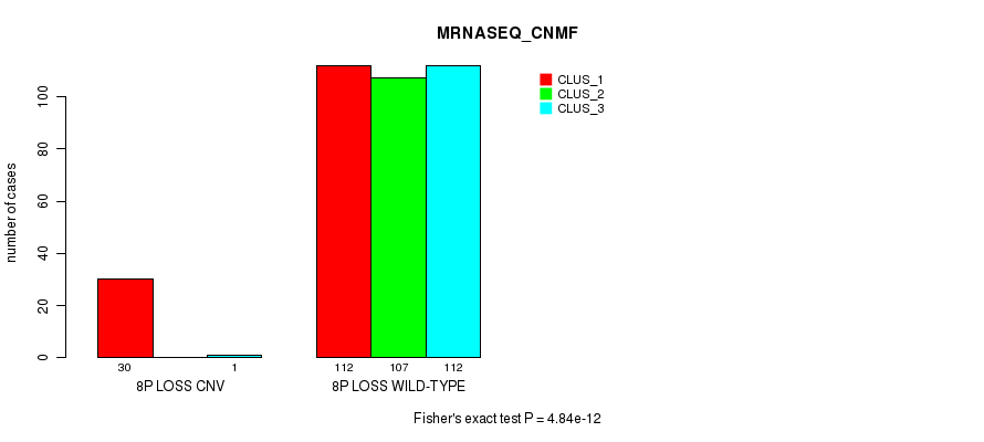8p loss cnv correlated to 'CN_CNMF', 'METHLYATION_CNMF', 'MRNASEQ_CNMF', 'MRNASEQ_CHIERARCHICAL', 'MIRSEQ_CNMF', and 'MIRSEQ_CHIERARCHICAL'.